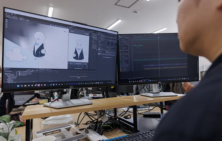 制作から開発までをすべて自社で一貫して行っているため、高い技術力と柔軟な対応力を活かし、お客様のご要望にきめ細やかにお応えします。社内にはデザイナー、3DCGクリエイター、エンジニアが在籍しており、最新技術や知見を取り入れながら、常にサービスをアップデートしています。さらに、独自開発で取得した特許技術も活用し、付加価値と実用性の高い体験の創出を目指しています。
